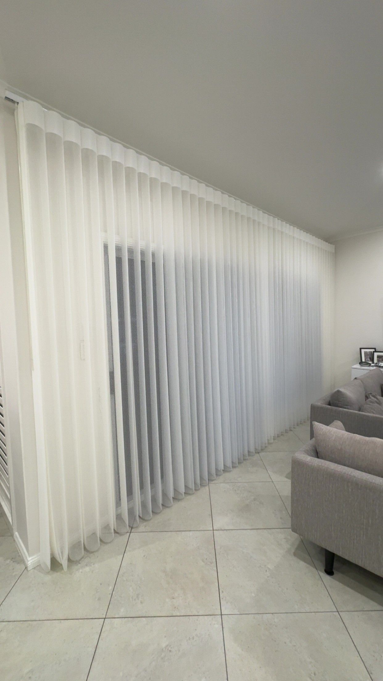 Veri Shades have the feel of curtains and the versatility of blinds. The soft fabric hangs beautifully. There are no weights or chains so you can walk through them anywhere, whether they're open or closed. Veri Shades patented design allows the elegance and versatility of a sheer and the privacy of a curtain. With the turn of a wand you can easily adjust the Veri Shades to control and adjust light levels.